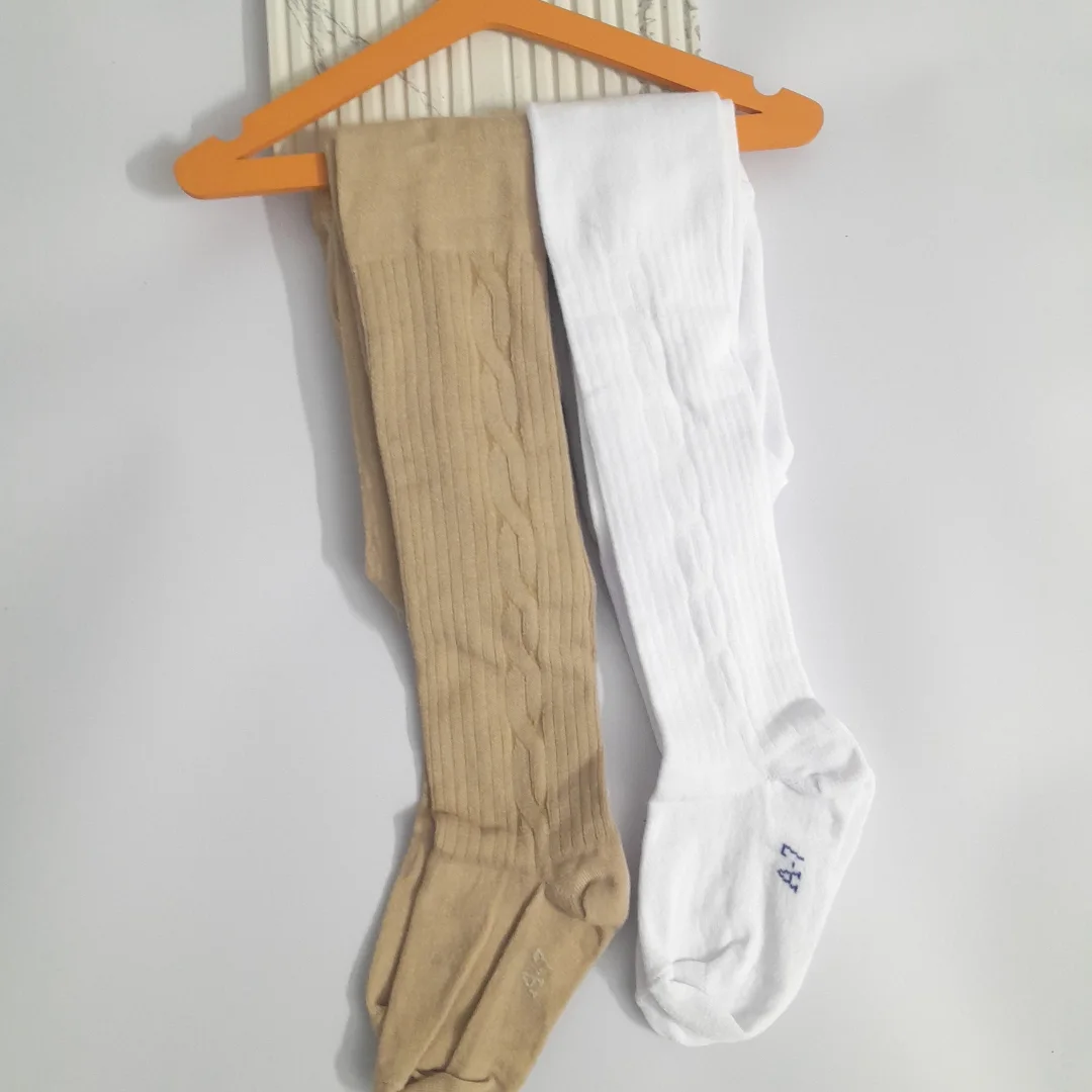 جوراب شلواری پنبه کبریتی گرم بالا مناسب ۴ فصل بسیار شیک و با کیفیت در رنگ سفید/کرم با سایز بندی متفاوت.