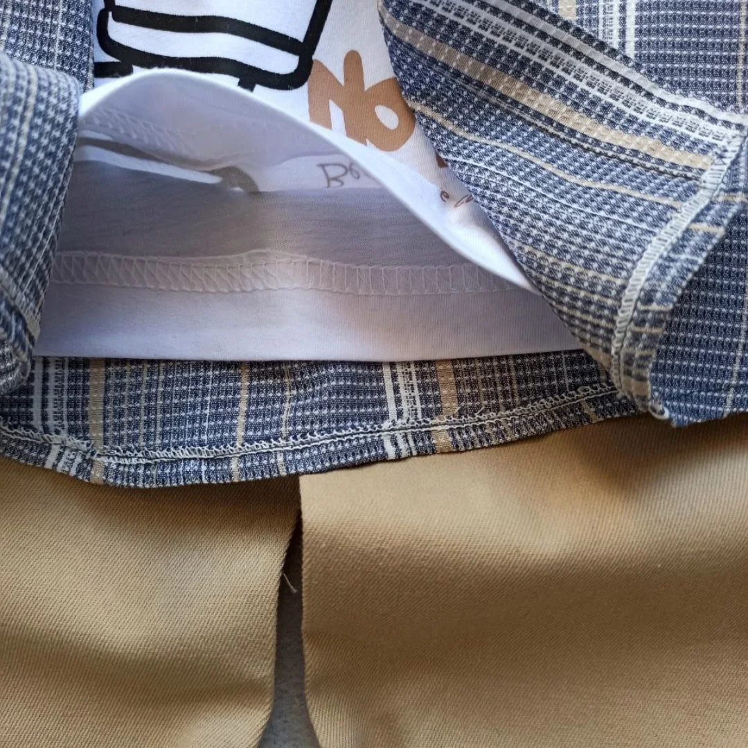 کیفیت فوق العاده عالی سه تیکه. جنس شلوار: کتان، تیشرت: پنبه یک رو آستین کوتاه جاپزول، پیراهن: نخبیسکوئیتی. شامل شلوار تک رنگ کرم و پیراهن دو رنگ.