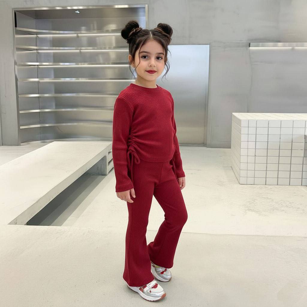 ست بلوز و شلوار تک رنگ اسپرت دخترانه