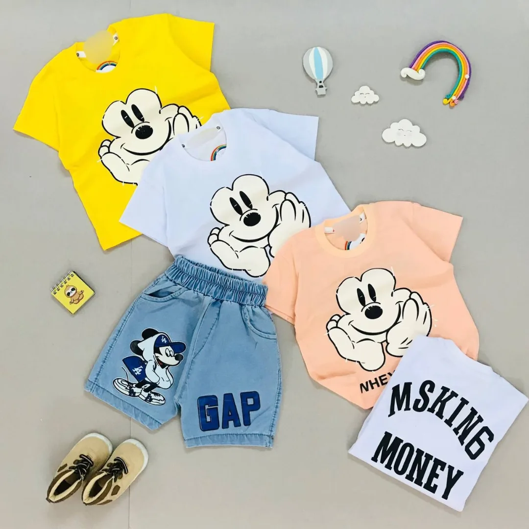 ست تیشرت و شلوارک جین میکی